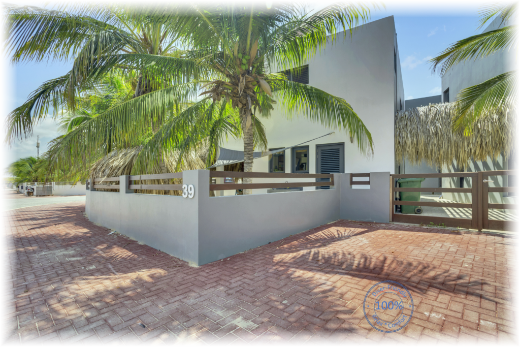 De villa is recent gebouwd met al het bijbehorende westerse comfort maar met een puur Caribische uitstraling en sfeer. De villa staat vrijstaand in een eigen tropische tuin met een jacuzzi welke grenst aan het terras van de open tuinkamer. Het geheel is compleet ommuurd dus veilig voor kleine kinderen.